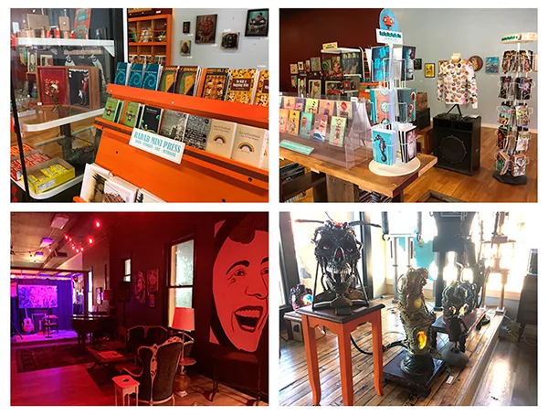 We are located in downtown Wenatchee, WA. We are an arts hub featuring personally curated exhibits showcasing works in the pop-surrealism and lowbrow movement, culling from artists all over the country but with a focus on local talent. We have new show openings every First Friday of every month. We screen cult classics, independent films and oddball movies in the theater. We also have hundreds of handmade and locally created art and curiosities in the Radar Mini-Mart gift shop. Stop by for some live music, art, a kooky film and some fine beer and wine.